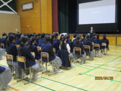 4月28日(金)6限、全校生徒を対象とした交通安全教室を実施しました。